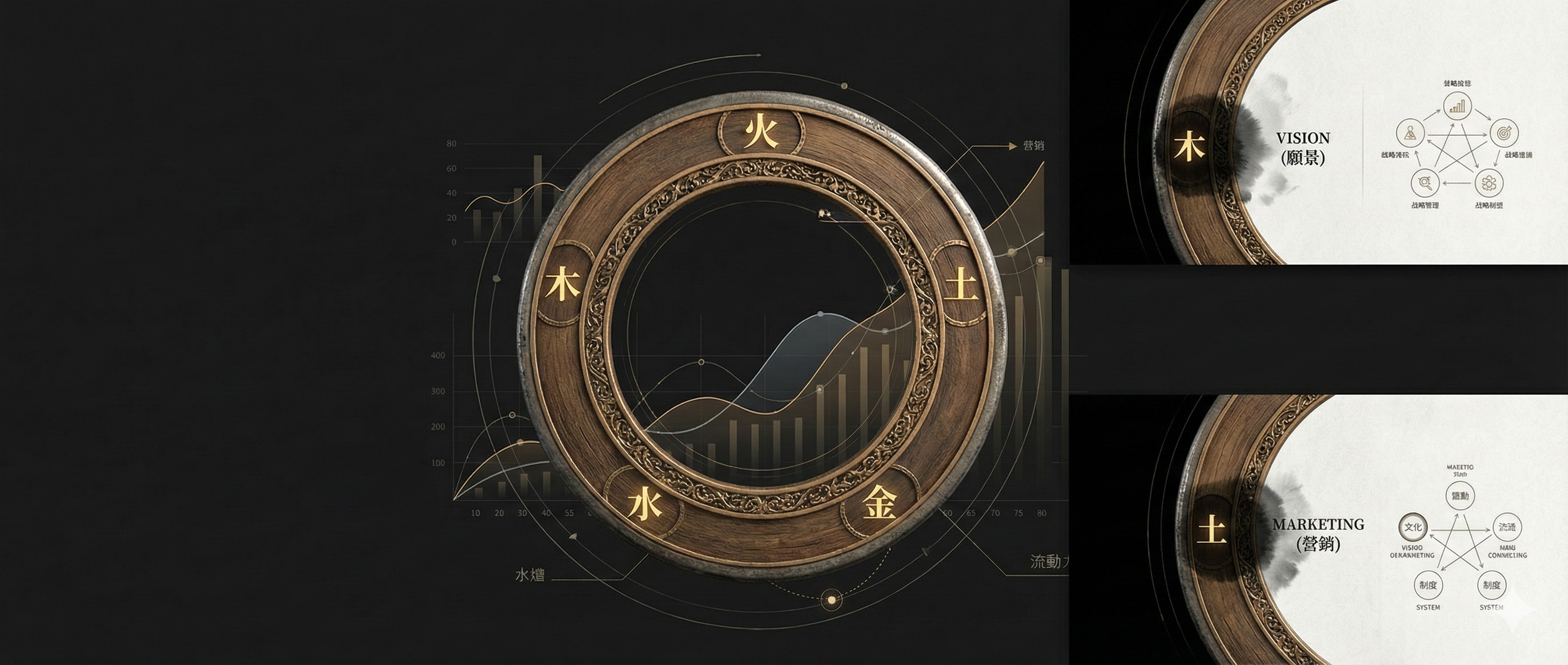 ◦ 五行定調: 運用木、火、土、金、水規律,為企業進行能量診斷與願景定調。