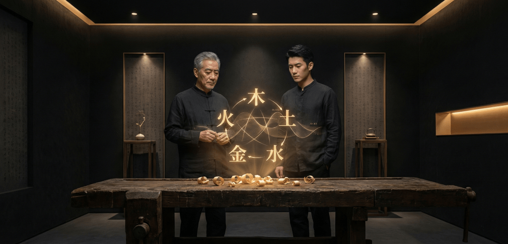 ● 背景簡述: 出身職人世家,擁有數十年傳統木雕工藝的沈澱與對《易經》智慧的深度研讀,。在長年的雕刻生涯中,他領悟到木性與企性相通,遂將「識材、施藝、現型」的工法昇華為一套系統化的「五行診斷」商業模型。